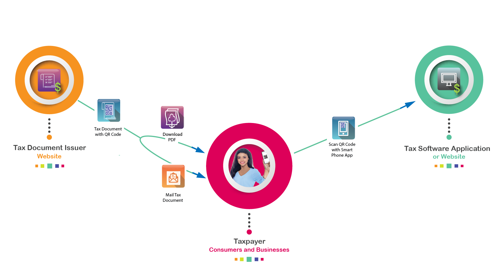 - Provide a simple mechanism for tax document issuers and tax software to integrate without having to build full-fledged API connections